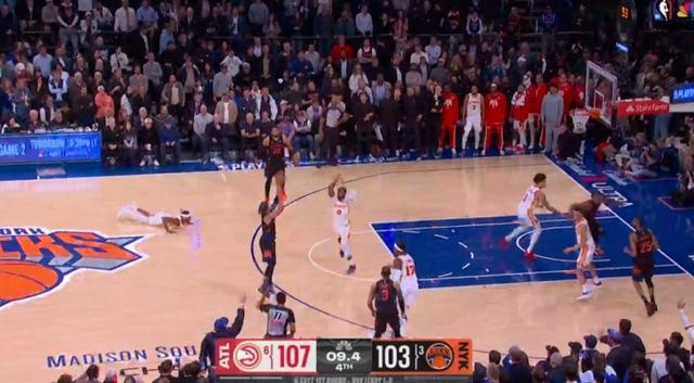 最后7秒,布伦森投进续命三分,唐斯对亚历山大掩护犯规漏吹;