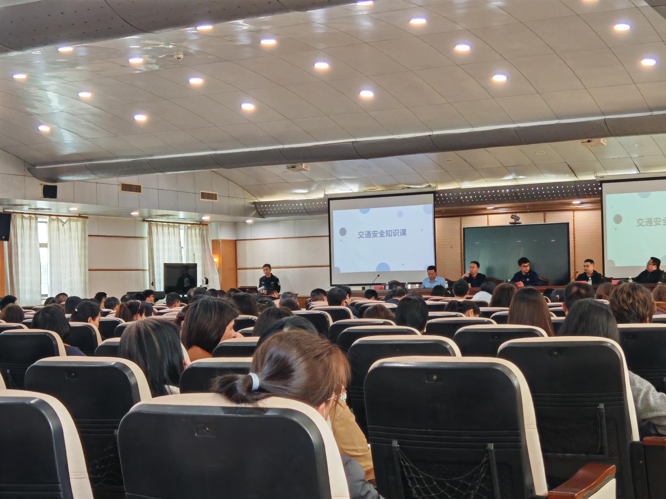 讲座现场,民警以PPT演示为载体,用通俗易懂的语言,向参会的学校管理人员系统普及交通安全知识,重点引导大家规范驾驶摩电,牢记正确佩戴安全头盔、遵守交通规则、不逆行、远离大型车辆的出行准则,做到安全文明驾驶。